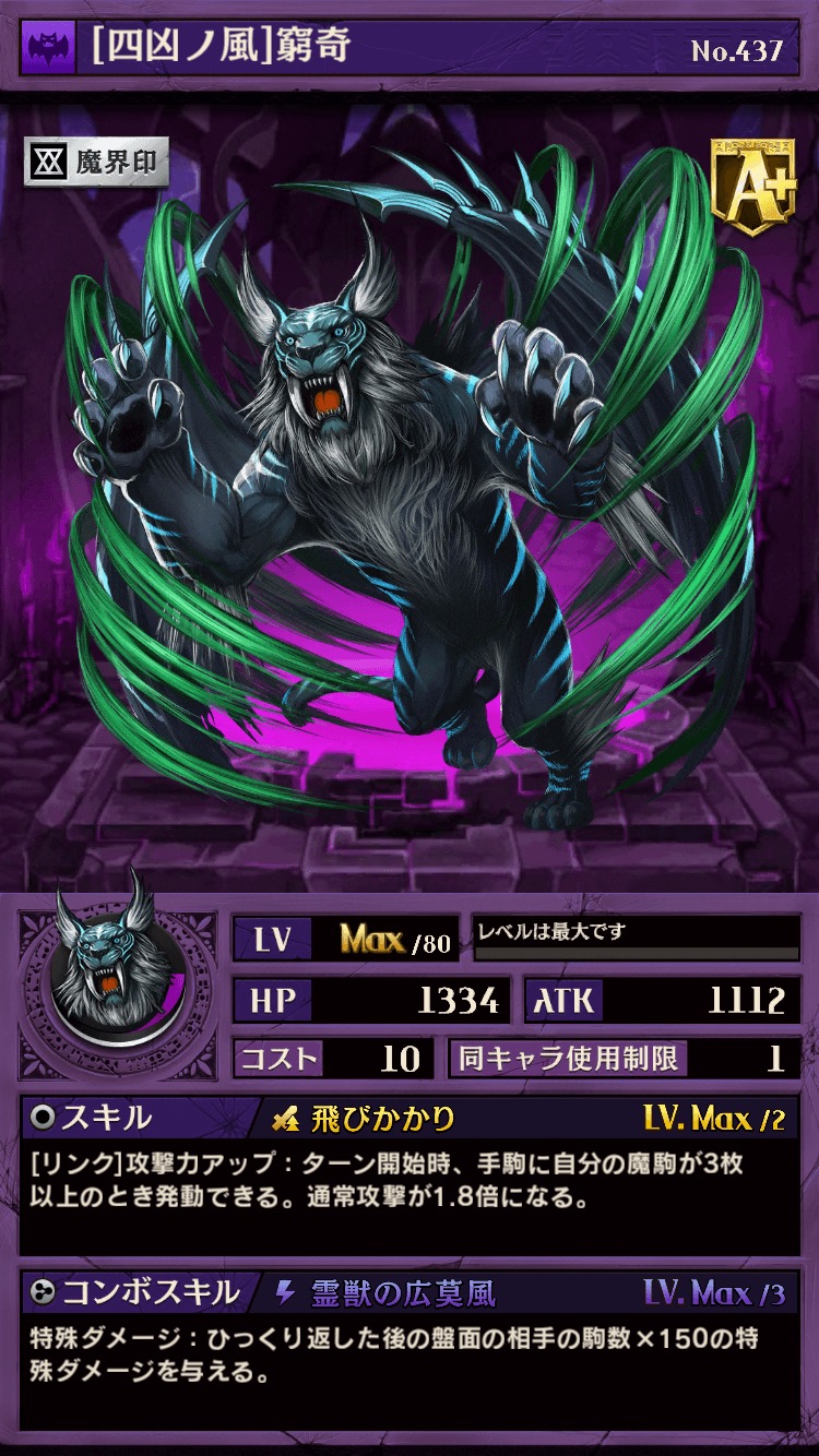 窮奇(A)/[四凶ノ風(しきょうのかぜ)]窮奇(A+) 属性:魔