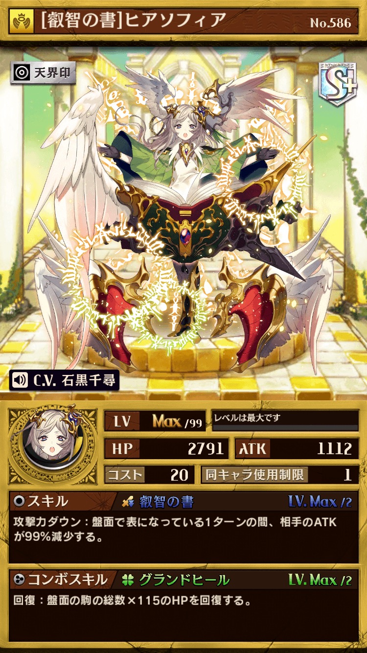 ヒアソフィア(S)/[叡智(えいち)の書]ヒアソフィア(S+) (CV:石黑千尋) 属性:神