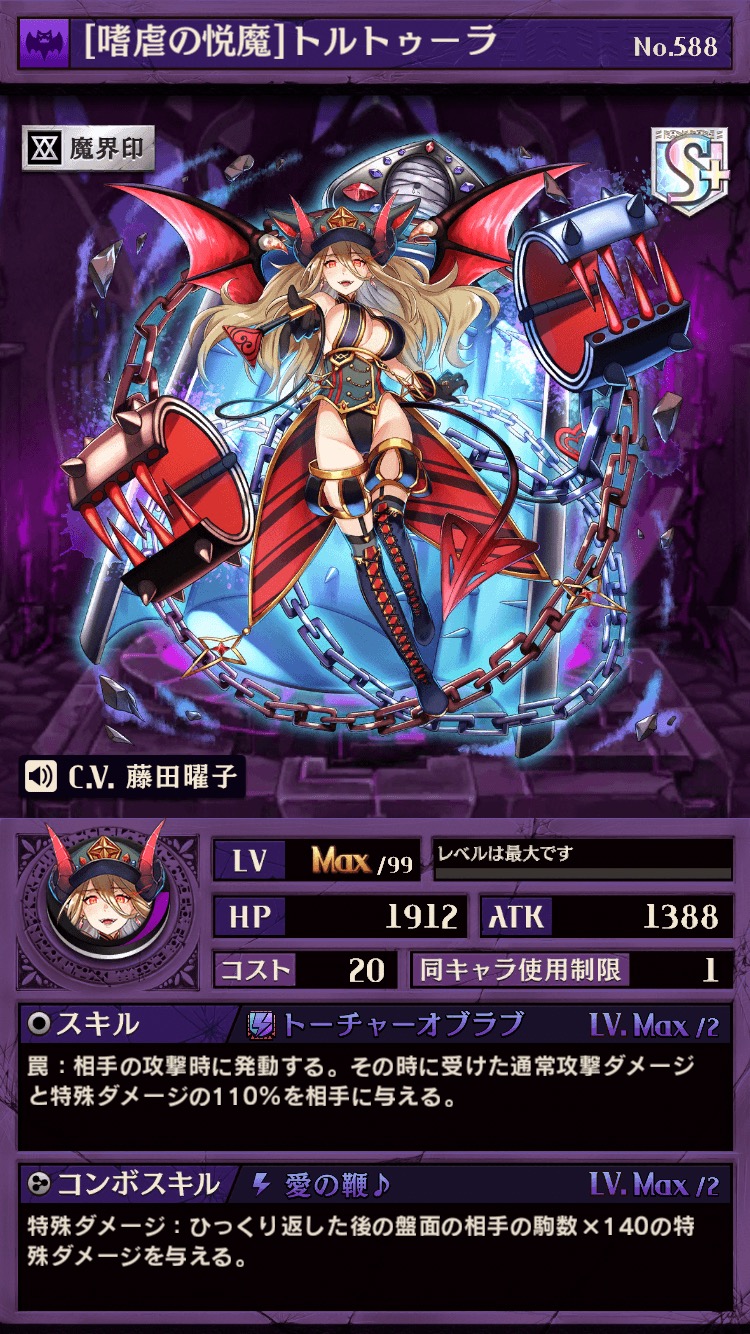 トルトゥーラ(S)/[嗜虐の悦魔(しぎゃくのえつま)]トルトゥーラ(S+) (CV:藤田曜子) 属性:魔