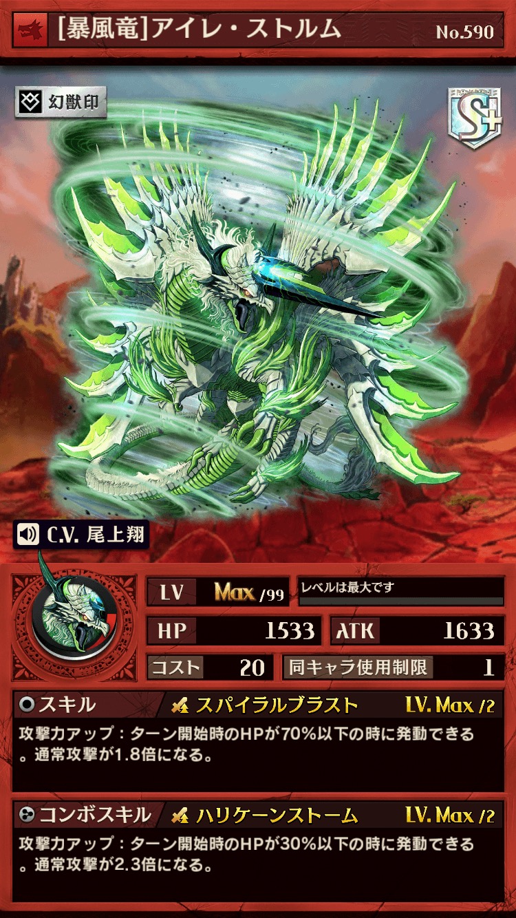 アイレ・ストルム(S)/[暴風⻯(ぼうふうりゅう)]アイレ・ストルム(S+) (CV:尾上翔) 属性:⻯