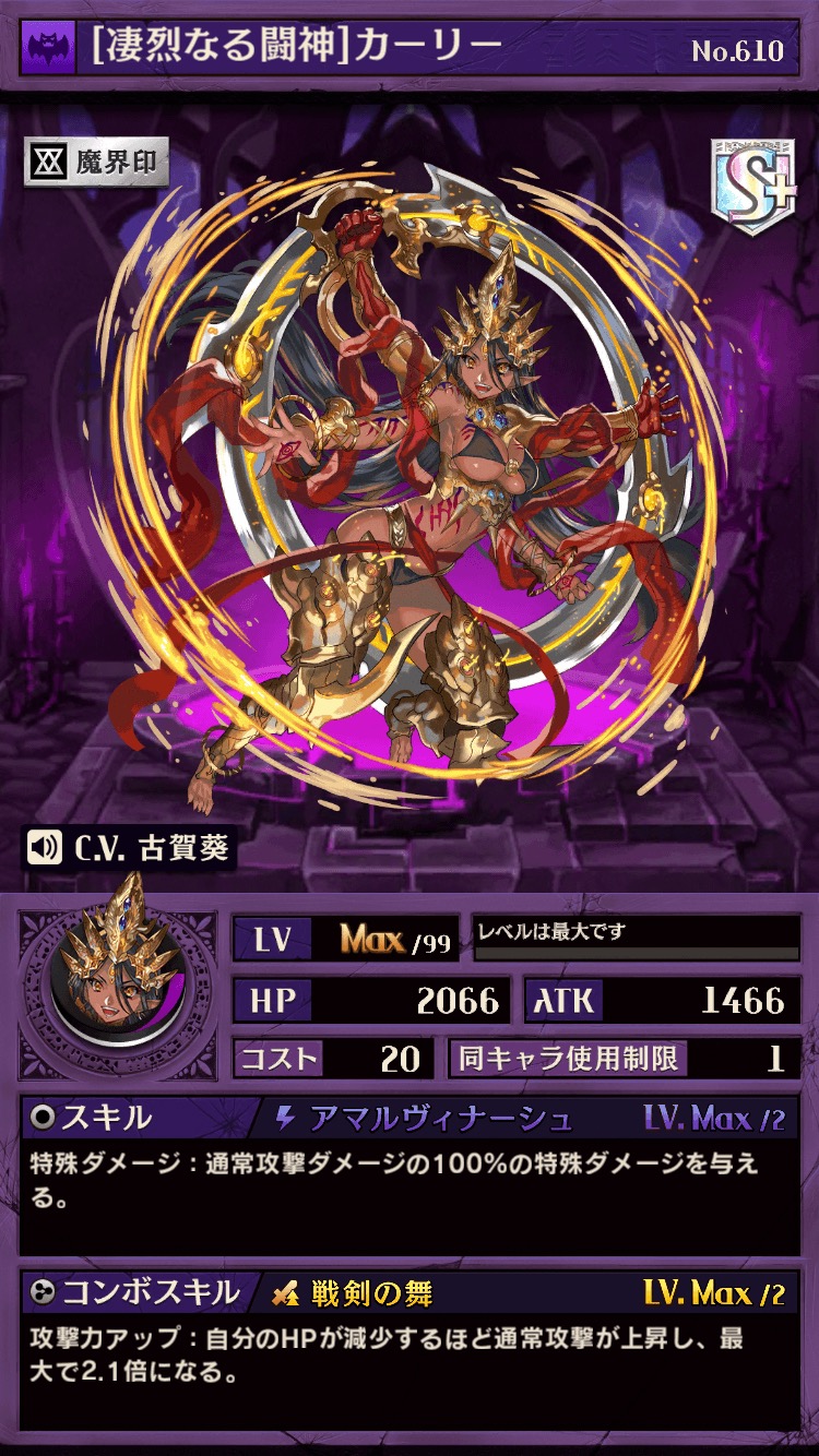 カーリー(S)/[凄烈(せいれつ)なる闘神]カーリー(S+)(CV:古賀葵) 属性:魔