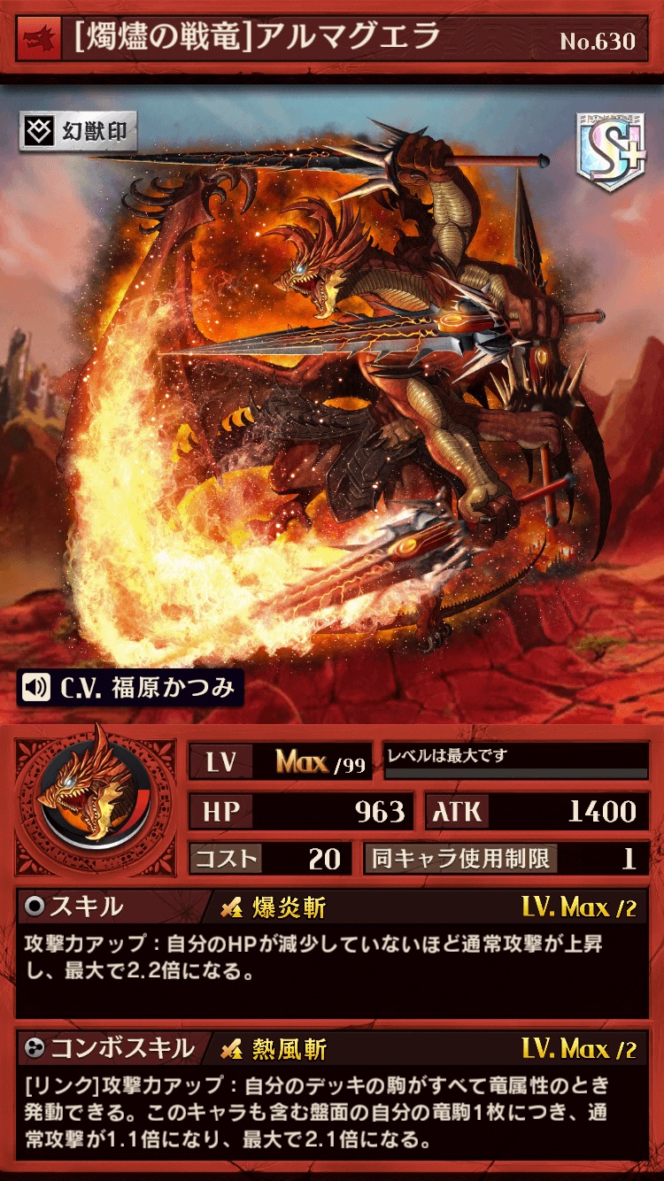 アルマグエラ(S)/[燭燼の戦竜(しょくじんのせんりゅう)]アルマグエラ(S+) (CV:福原かつみ) 属性:竜