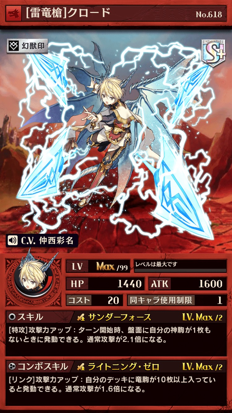 クロード(S)/[雷竜槍(らいりゅうそう)]クロード(S+) (CV:仲西彩名) 属性:竜