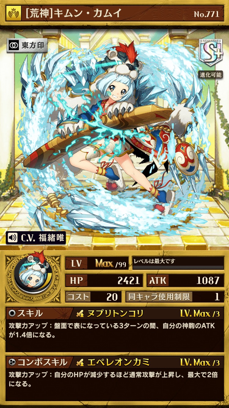 進化:[神送祭の饗宴(しんそうさいのきょうえん)]キムン・カムイ(S+)