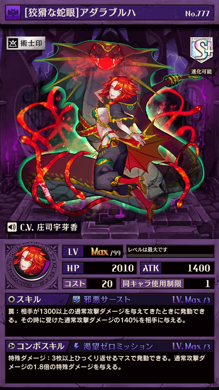 進化:[蛇鱗の艶魔(じゃりんのえんま)]アダラブルハ(S+)
