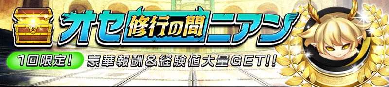 「オセロニアン修行の間」は、期間中1回のみ挑戦可能なイベントです。難度は「初級」で、クリアすると「リトルゴールドフェアリー(B)」や「各属性のタートル(A)」のほか、大量の経験値やゴールドなどを手に入れることができます。