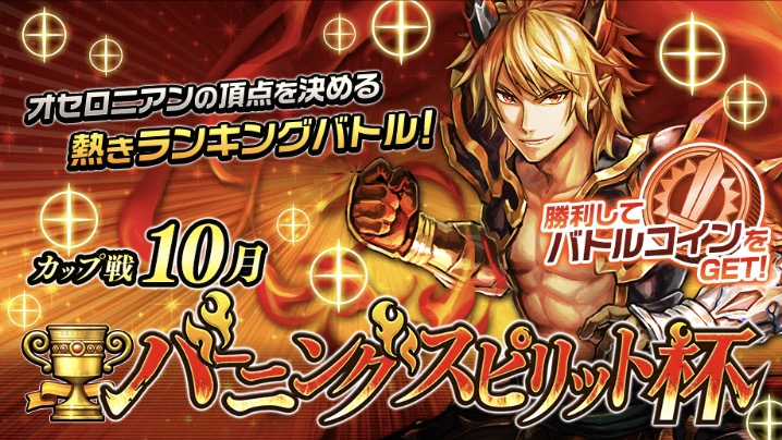 『逆転オセロニア』にて、明明日10月27日(金)12:00より開催予定のカップ戦「バーニングスピリット杯」の報酬駒「リンド」の情報が公開されました。今回はスキルに強力なチャージを持つ竜駒を獲得するチャンス!