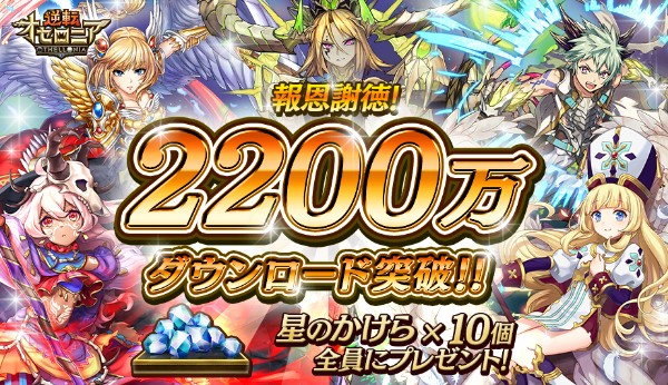 『逆転オセロニア』は、本日2018年8月28日(火)に、2,200万ダウンロードを突破しました。それを記念して、「星のかけら」10個をプレゼント!