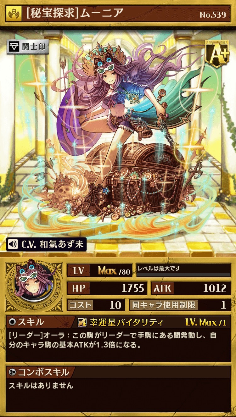 「角マス」で効果を発揮する能力を所持しています。盤面が特徴的なクエストやイベントなどのステージで大きく役立ちそうです。