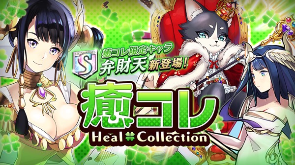 2016年9月7日(水)14:00からは、ケット・シーやイシスなどの回復キャラの出現率が上昇するプレミアムガチャ「癒やしコレクション(癒コレ)」が開催。また、今回から「癒コレ」限定の新たなSキャラの弁財天が追加されました!