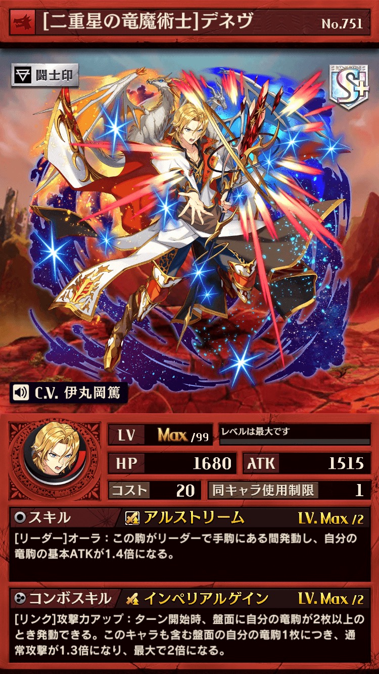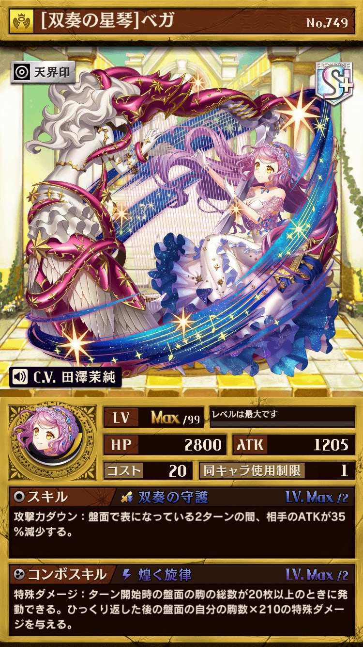 3キャラのスキル、コンボスキル共に、従来の駒とは大きく変化しています。また、貫通スキルへの唯一の対抗策となっている強力なデバフを持つ「ベガ」。竜デッキのリーダーとして大活躍しそうな「デネブ」はゲットしておきたいところ。