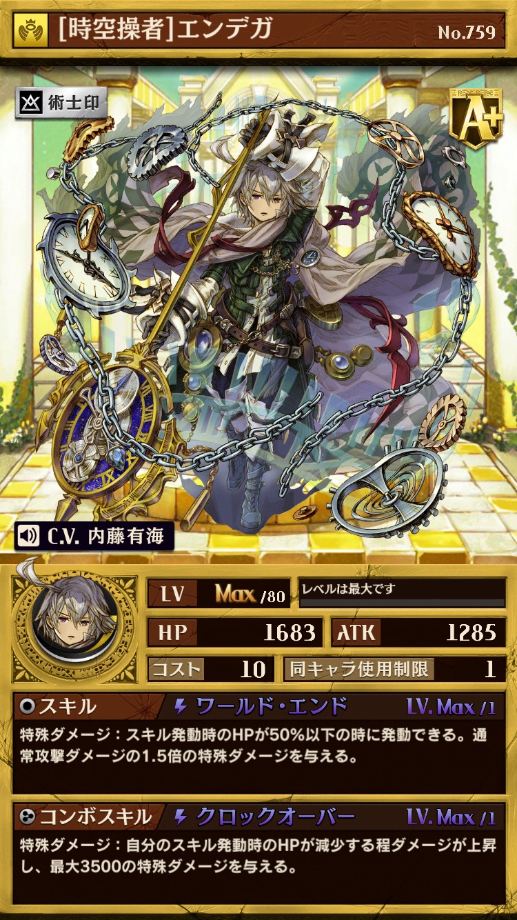 コンボスキル「ムーンライトマジック」は、自身のHPに応じた特殊ダメージを与えられる。スキル、コンボスキル共に属性依存がないので、総HPがの高い神デッキに組み込んでも効果的。
