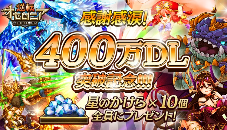 『逆転オセロニア』は、12月21日(水)に400万ダウンロードを突破。そして本日からはCM放送も開始されたこともあり、今後も着々とDL数を伸ばすのではないかと思います。ますます盛り上がり続ける『オセロニア』に今後も目が離せません!