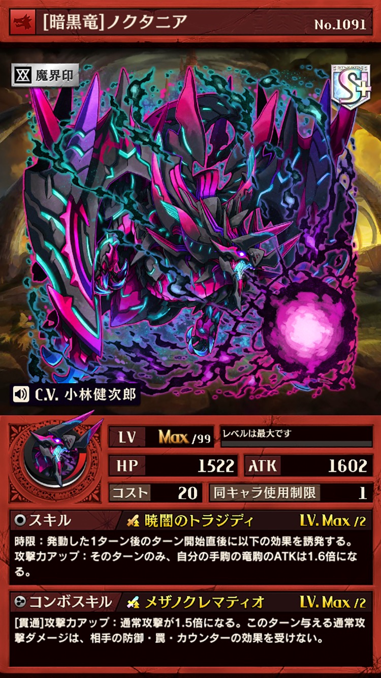 スキルとコンボスキルが噛み合えば、破壊力は抜群。それに貫通も加わるとなると、盤面の有利を捨ててでもノクタニアをひっくり返さなければいけない状態も出てくるはず。