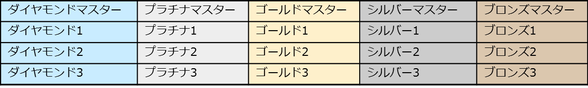 新クラスは「ダイヤモンド」、「プラチナ」、「ゴールド」、「シルバー」、「ブロンズ」の5クラス存在し、1クラスにつき4つの階層に分かれています。
