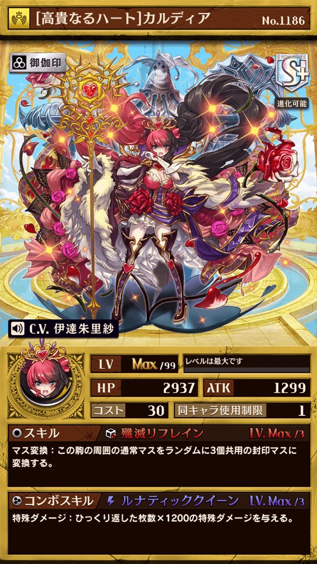 [ハートの女王]カルディア(S+)(CV:伊達朱里紗)属性:神(右)闘化: