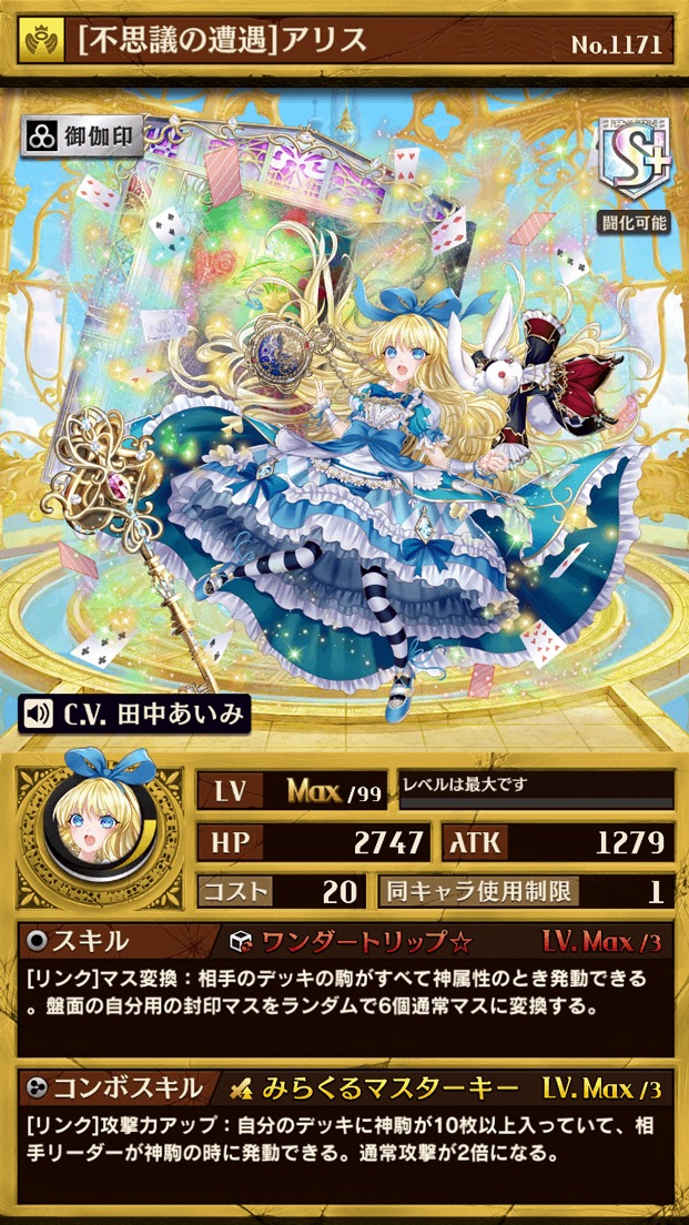 (左)進化:[不思議の遭遇]アリス(S+)(CV:田中あいみ)属性:神