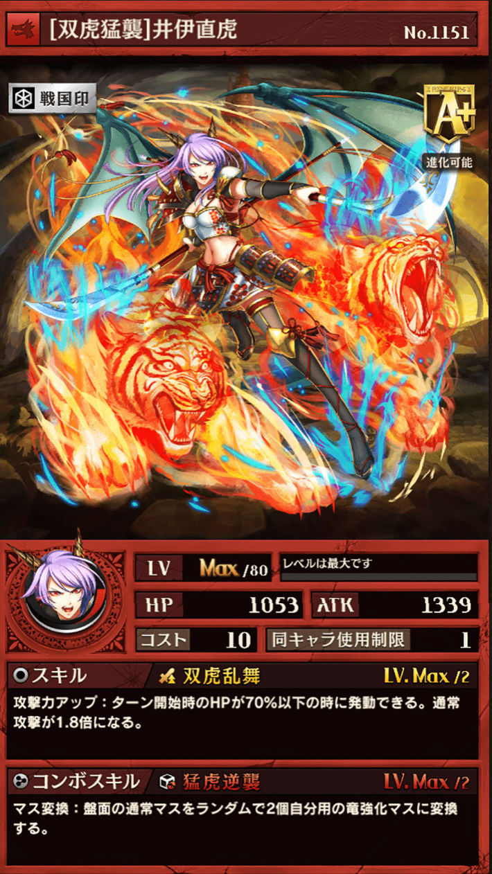 [双虎猛襲]井伊直虎※闘化後スキルレベル最大時のものです。また、