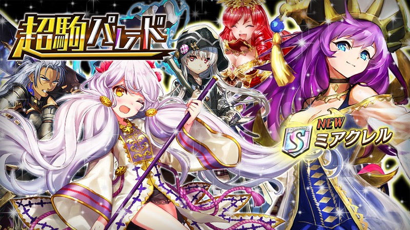 今週は、「超駒パレード」に神属性の新駒である「ミアクレル」が追加された他、新規闘技場イベントがいっきに3本開催されるなど、非常に盛りだくさんな内容となりました。