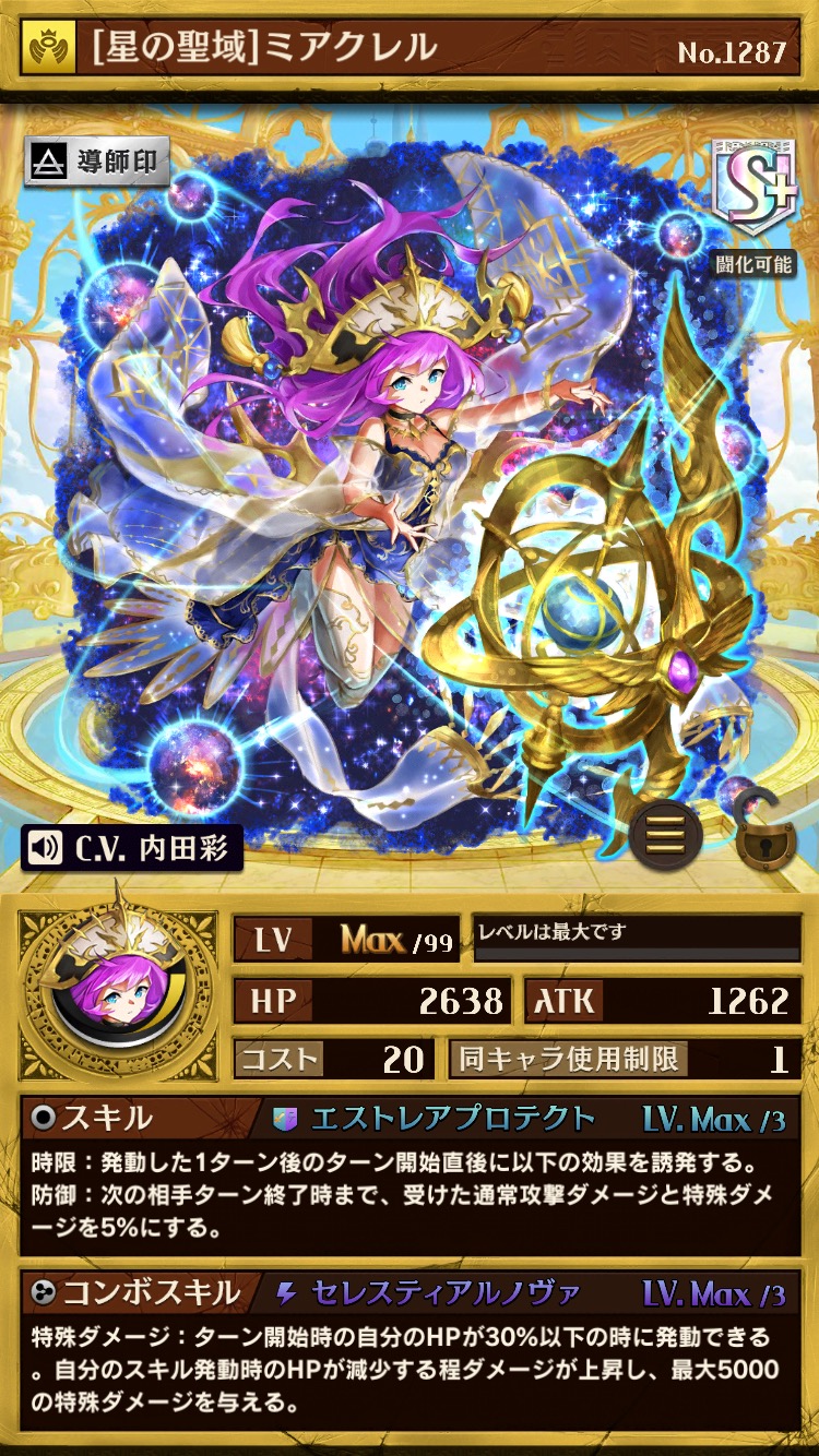 (左)[星の聖域]ミアクレル(S+)(CV:内田彩)属性:神