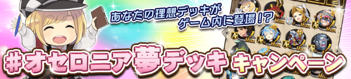 本日6月16日(金)より、理想のデッキを投稿して選出されると、<お試しデッキ>としてゲーム内に実装され、オリジナルグッズも当たる「オセロニア夢デッキキャンペーン」が開催されました。