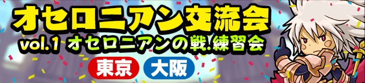 東京のゲストにはオセロニアンにはお馴染みのみそしるさん&饅頭丸さん、大阪にはMappy会長が招かれるとのこと。ちなみに、この交流会のテーマは「オセロニアンの戦の練習会」!