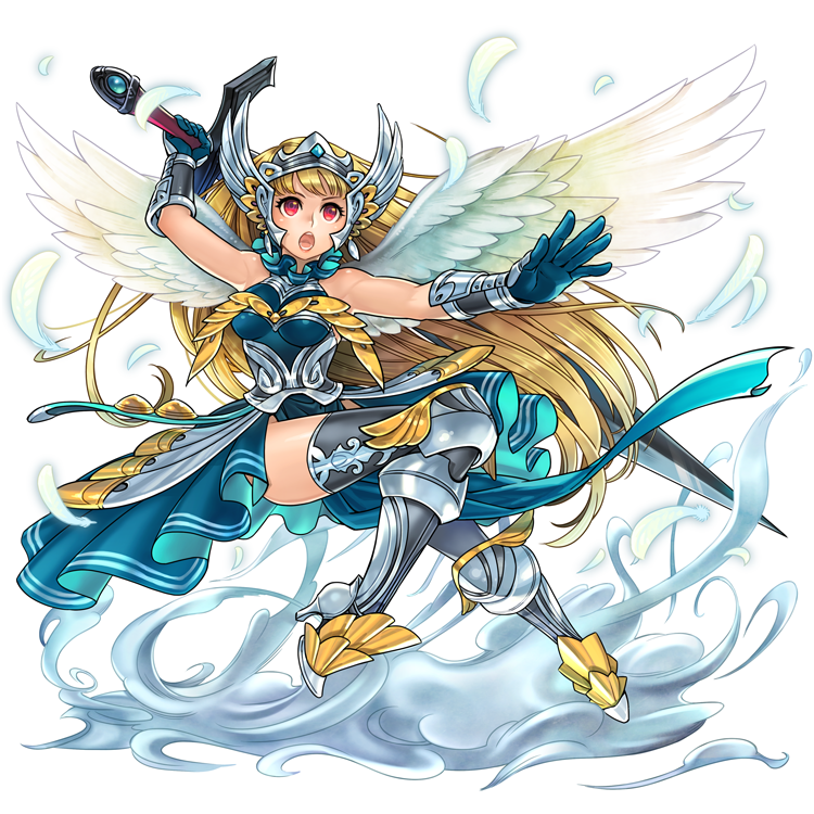 神属性のAキャラ「ソードヴァルキリー」は、新登場したスキル[リンク]という能力を持っています。自身の神属性のキャラクターが盤面上に4体以上いる時に発動する能力で、コンボスキルの「アル・コインブリス」と共に、後半に力を発揮するキャラクターですね。
