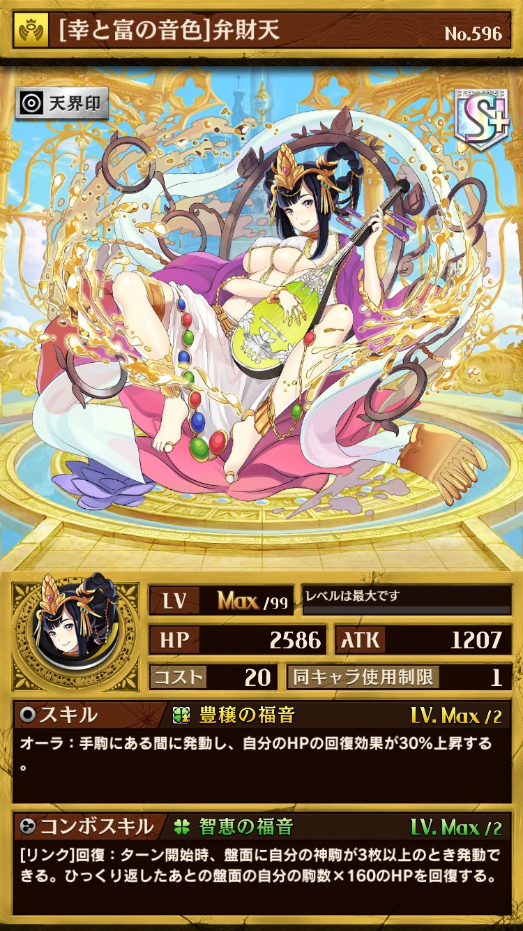 唯一の「癒しコレクション」限定キャラクターとなっており、能力を加味しなければ、この弁財天こそが一番の当たりと言っても良いかもしれません。