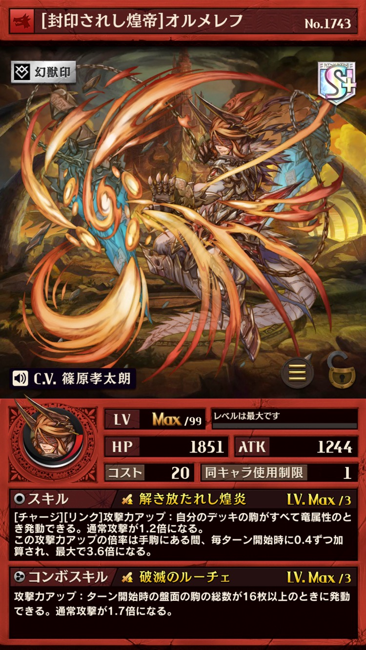 (左)[封印されし煌帝(こうてい)]オルメレフ(S+)(CV:篠原孝太朗)属性:竜