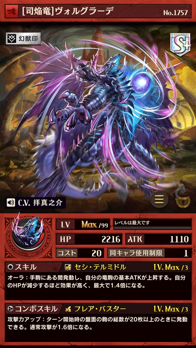 (右)[司焔竜(しえんりゅう)]ヴォルグラーデ(S+)(CV:拝真之介)属性:竜