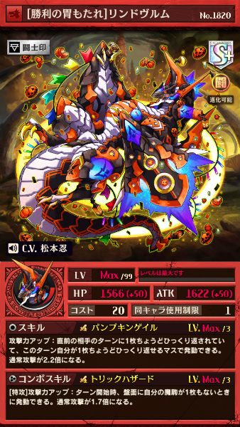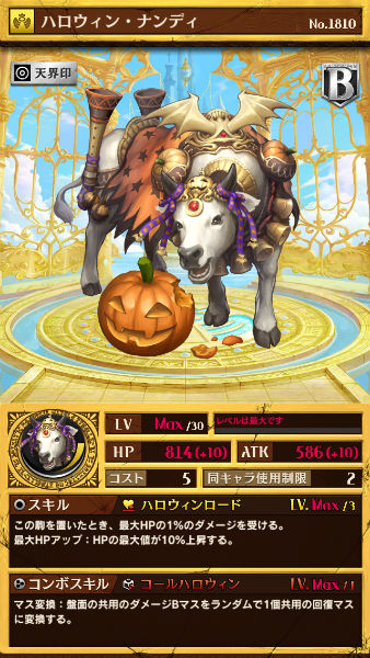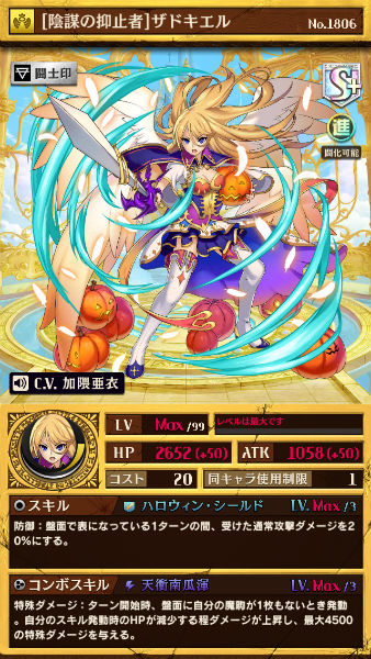 ハロウィン・ザドキエル(闘化)のスキルで召喚されるトークン駒。ひっくり返された時に特殊ダメージを半減できるほか、コンボスキルも持つので、ひっくり返されずに盤面に残っていても活躍することができます。
