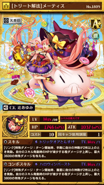 スキル・コンボスキルともに使いやすい特殊ダメージのスキルを持つので、手軽なダメージ源となるでしょう。ただし、魔属性のデッキでしかスキルを発揮できないので、編成できるデッキが限られるのが難点です。