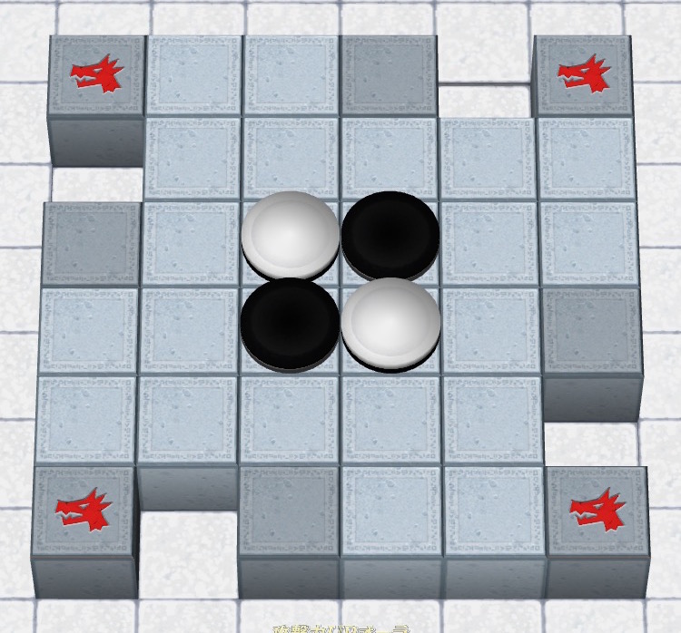 攻撃力アップ:角マスのみ発動できる。盤面で表になっている間、竜属性の駒のATKが1.2倍になる。