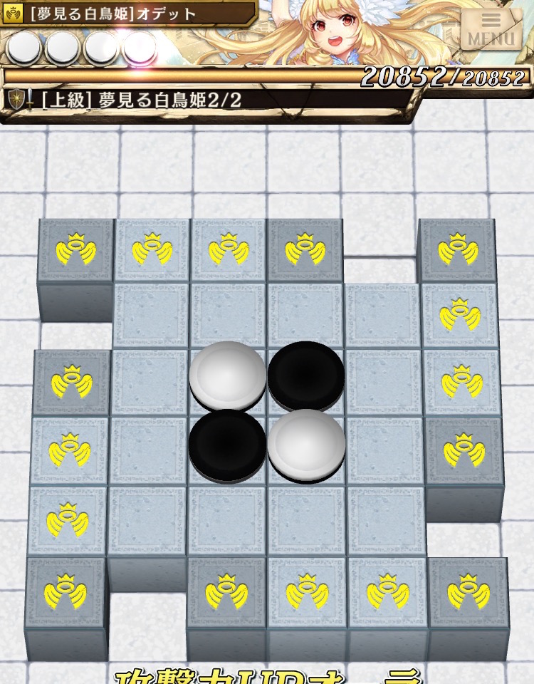 [リンク]回復:盤面に自分の神属性の駒が2枚以上あるとき発動。ひっくりかえした枚数×300のHPを回復する。