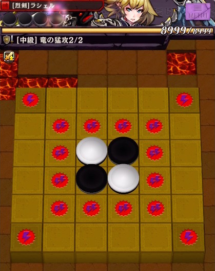 ステージは基本的にこちらが後攻となる。盤面の特色上、序盤はなかなか良いマス目に打てない為、ひっくり返されると発動するカウンター能力を持つ駒が便利。