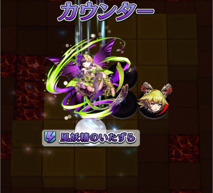 相手の2ターン目に出ることが多く、スキル「稲妻斬」が発動する。その場合、2526の大きなダメージを食らう。序盤では馬鹿にできないダメージの為、自分の最初のターンに打たれそうなところにカウンタースキルを持つ駒を打てると効果的だ。