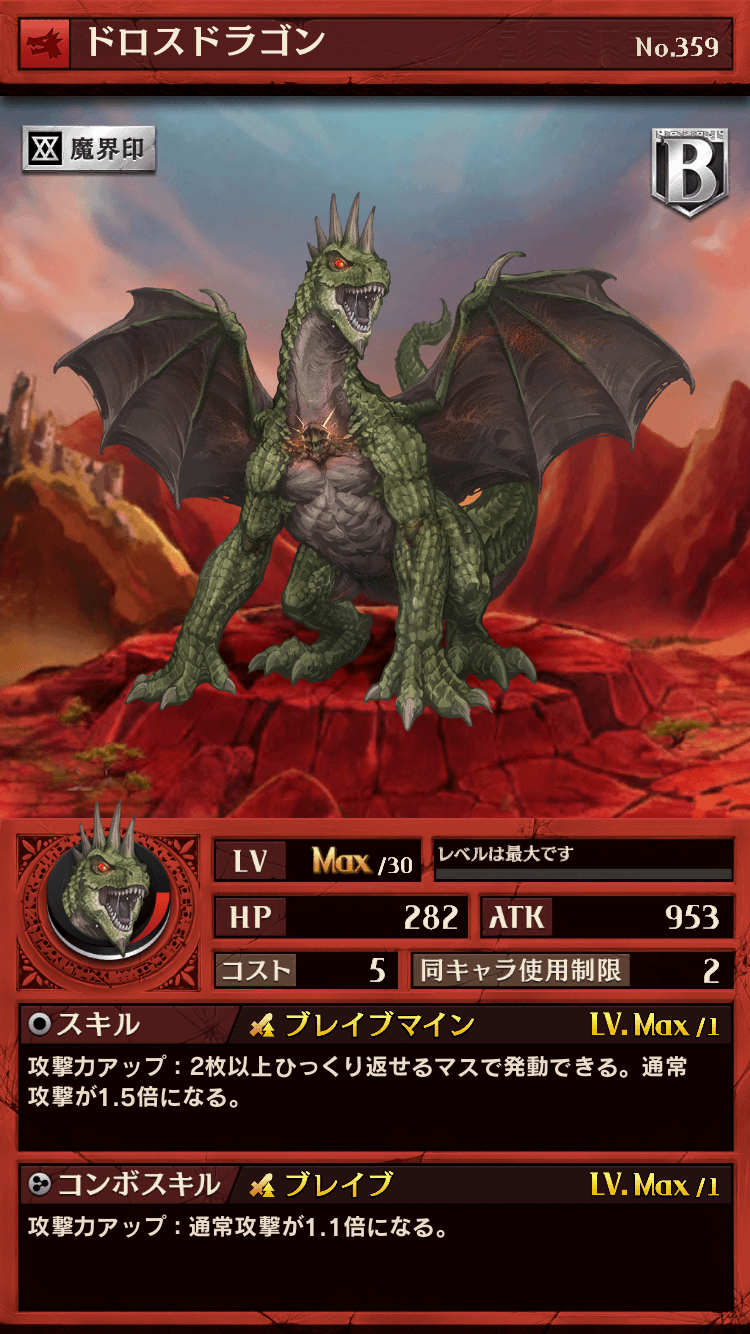 竜属性のドロスドラゴンは、HPは低めだが、その分高いATKを誇る。