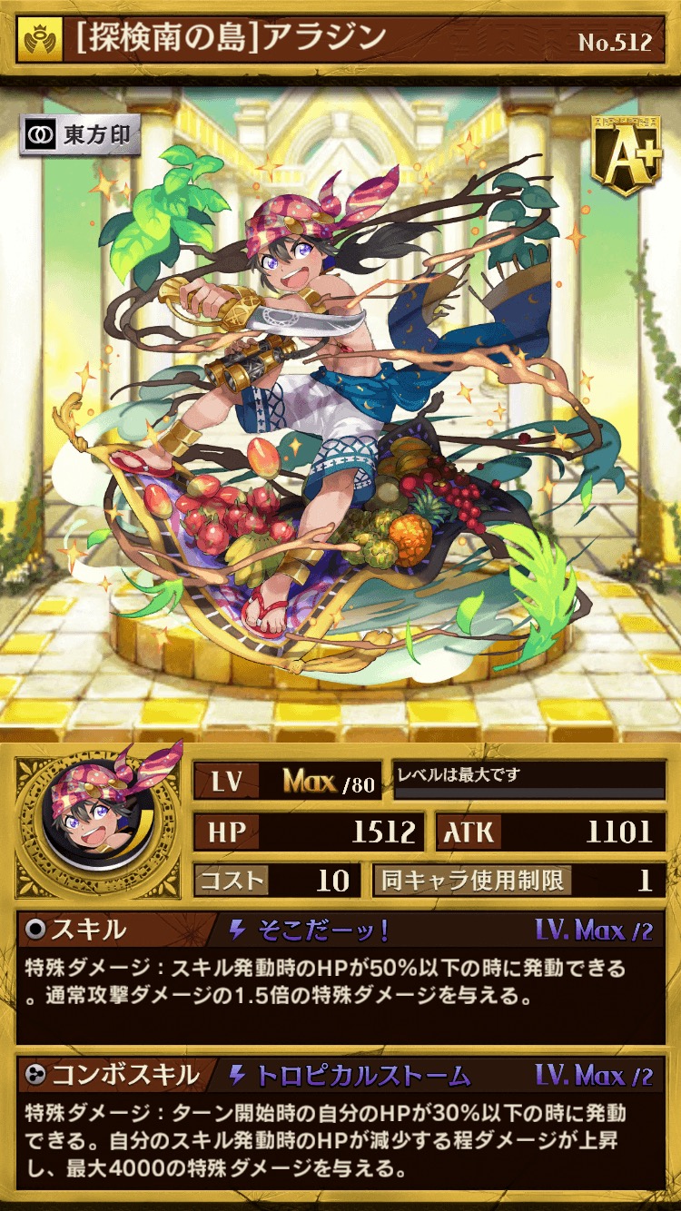 特攻スキル持ちです。リーダーに設定して、初手で打ってくるプレイヤーも多いキャラクターとなっています!
