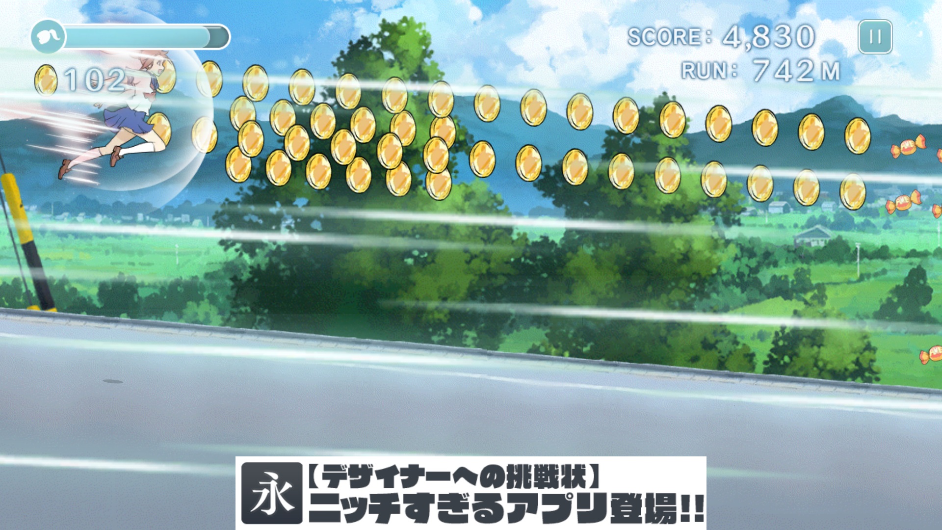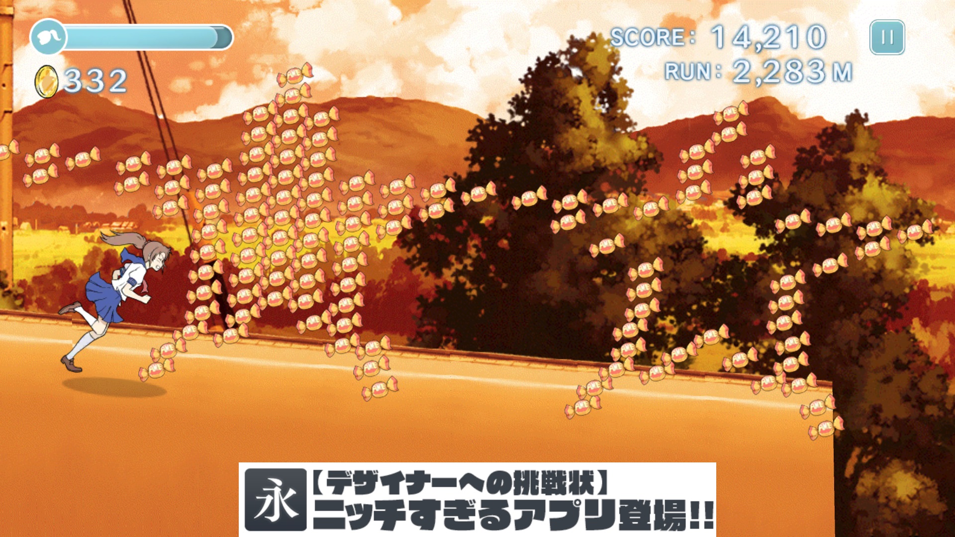 今回紹介する『乙女ダッシュ』は、ひたすら坂を下り続けるエンドレスタイプのランアクションゲームです。基本操作はタップのみで、坂の途中には色んな仕掛けが待ち受けています。