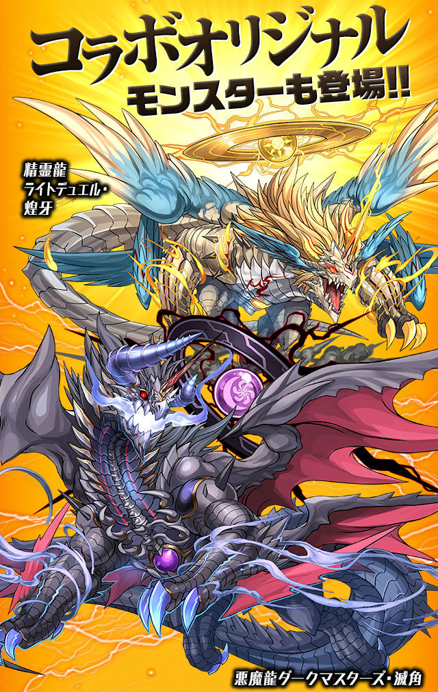 コラボダンジョンの道中ではフェニックスライダーを始めとした、新ライダーシリーズ4種のスキル上げが可能。最奥のボスは精霊龍・ライトデュエル・煌牙、悪魔龍ダークマスターズ・滅角のいずれか1体がランダムで出現。また、各モンスターからは「デュエル・マスターズ」ガチャキャラクターと同じスキルを持ったカードがまれにドロップ!この機会を見逃さないようにしましょう。