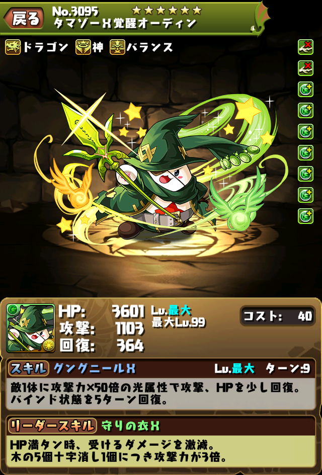 Lv3【木光闇】 | たまドラ(HP+33、攻撃+33、回復+33) | 30 |