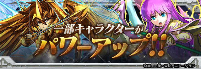 コラボガチャ、コラボダンジョンの登場と、「星矢」「沙織」などの一部キャラクターのパワーアップが実施されます。