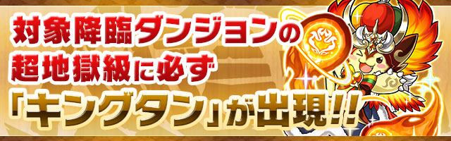 期間中にスペシャルダンジョンで配信される対象の降臨ダンジョン(超地獄級フロア)に「キングタン」が必ず出現します。