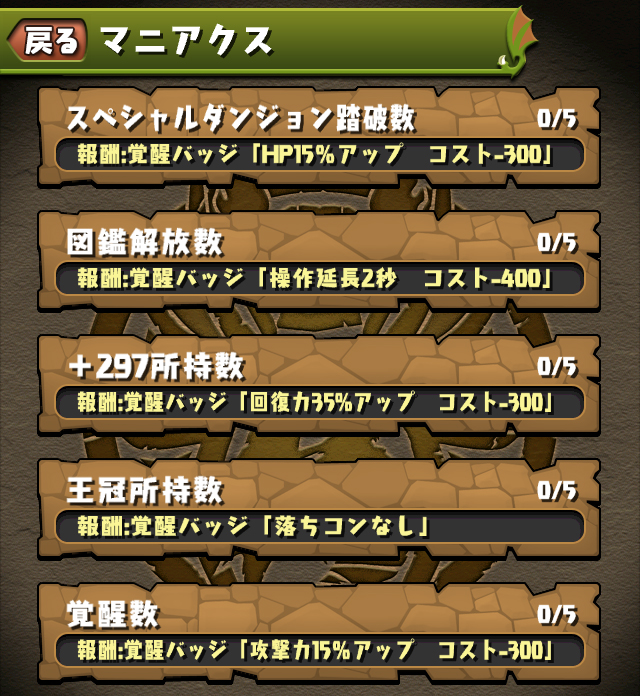 クエストに「マニアクス」が追加されます。各フロアごとに指定されたクエストをクリアすると、強力な覚醒バッチや「潜在拡張たまドラ」などの様々な報酬が貰えます。