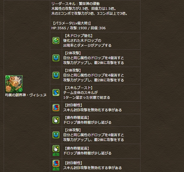 操作延長2秒 コスト-400 | ドロップ操作時間が2秒延びるが、 チームのコスト上限が400ダウンする |