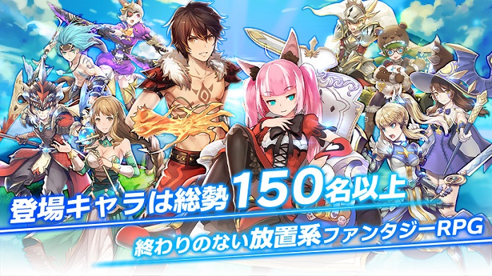 本作では、総勢150名以上の魅力的なキャラクターが登場するほか、簡単なオート戦闘で育成や、アイテム、資源の獲得が可能です。