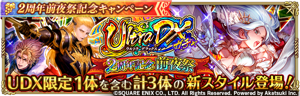 「1度限り有償10回ガチャのステップ2と4が無料!2周年記念前夜祭 Ultra DXガチャ」登場