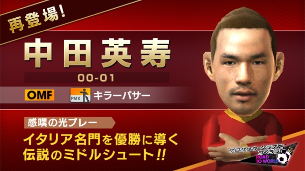 『プロサッカークラブを作ろう!ロード・トゥ・ワールド(サカつくRTW)』にて、本日2018年9月5日(水)より、日本サッカー界を牽引してきた偉大なレジェンド「中田英寿」氏が★5選手として登場する「ピックアップスカウト」が開催中です。