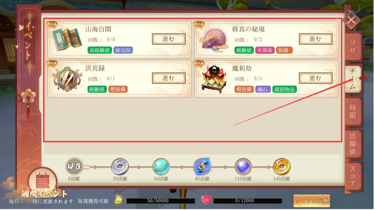 「山海異聞」は、チャプターをクリアしてマップを開放していくモードとなります。多くの経験値を獲得できるほか、進めていく過程でさまざまなアイテムを獲得可能です。