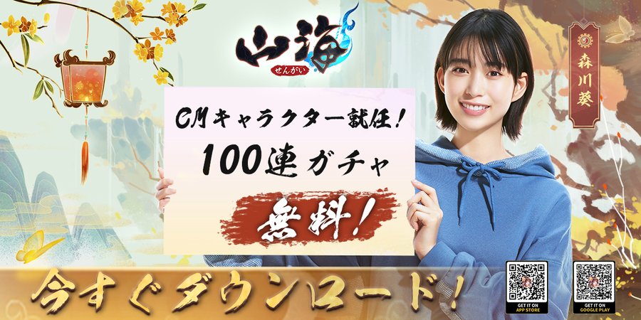 本CMでは、CMキャラクターに就任した森川さんが『山海』をプレイする様子とともにバトル映像や100連ガチャ無料キャンペーンが紹介されています。異世界に入り込んでいくかのような、本作の魅力が詰まったCMを楽しみましょう。